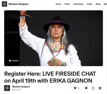 "Join us for an intimate LIVE Fireside Chat with Erika Gagnon, a ceremonial leader and wisdom keeper who has walked the medicine path for over 30 years. Born in Canada and shaped by decades of deep work alongside Indigenous Elders from North and South America, Erika carries ancient healing wisdom into the modern world — with humility, grace, and fire..." For more information and to sign up visit WISDOM KEEPERS
